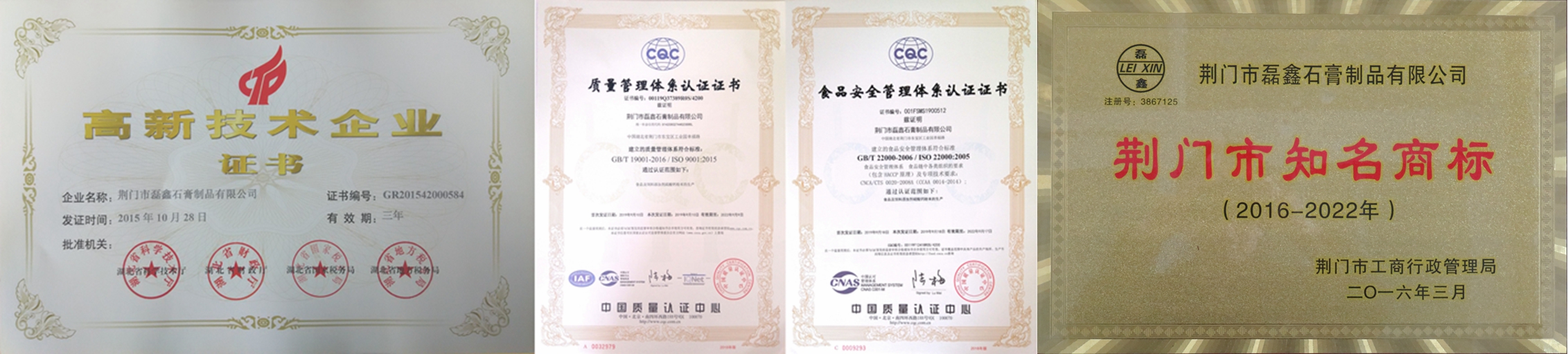 國家高新技術(shù)企業(yè)!湖北省專精特新中小企業(yè)!湖北省支柱產(chǎn)業(yè)細分領(lǐng)域隱形冠軍培育企業(yè)!湖北省守合同重信用企業(yè)!湖北省兩化融合示范企業(yè)!荊門市知名商標!中國高純、高白、高亮、超細硫酸鈣(石膏)生產(chǎn)基地!中國取得《食品生產(chǎn)許可證》的食品添加劑硫酸鈣(石膏)供應(yīng)商!中國取得《飼料添加劑生產(chǎn)許可證》和《產(chǎn)品批準文號》硫酸鈣供應(yīng)商!中國取得《出口飼料生產(chǎn)、加工、存放企業(yè)檢驗檢疫注冊登記證》飼料添加劑硫酸鈣供應(yīng)商!通過ISO9001國際質(zhì)量管理體系認證!通過ISO22000國際食品安全管理體系認證!通過HALAL國際清真認證!通過KOSHER猶太認證! 荊門市磊鑫石膏制品有限公司成立于2002年,位于石膏資源富集的湖北省荊門市東寶區(qū)工業(yè)園幸福路,占地27000余平方米,是一家在業(yè)內(nèi)享有盛譽的集石膏、石膏粉和硫酸鈣制品研發(fā)、生產(chǎn)、銷售于一體的高新技術(shù)企業(yè)。公司擁有 “磊鑫”、“杰普生”、“凱氏蘇特”等5個國家注冊商標,2個發(fā)明專利,18個實用新型專利,50余篇自有技術(shù)應(yīng)用研究,36篇權(quán)威期刊發(fā)表技術(shù)論文。主要產(chǎn)品有:醫(yī)藥級硫酸鈣、食品級硫酸鈣、飼料添加劑硫酸鈣、人造石透明填充粉,凱色粉、涂料及化妝品功能性填料和特級半水纖膏粉、混合石膏粉、模型石膏粉,建筑石膏粉等九大系列50余種產(chǎn)品。公司享有自營進出口權(quán),客戶遍布全世界,是多家公司、集團和世界500強企業(yè)的優(yōu)秀供應(yīng)商!產(chǎn)品遠銷到韓國、日本、俄羅斯、中國臺灣、東南亞、歐美、中東、非洲等國家和地區(qū)。公司緊靠207國道,焦柳鐵路穿境而過,距漢江碼頭50公里,長江沙市港90公里。交通運輸便利,確保及時供貨。“待用戶為上帝誠信為本,視質(zhì)量為生命持之以恒!”是我們的企業(yè)宗旨,與我們合作是您明智的選擇,共謀發(fā)展是我們共同的目標!歡迎垂詢,歡迎惠顧! Your Trusted Source For Food-Grade Calcium Sulfate!——做全球更好的食品級硫酸鈣(石膏)供應(yīng)商!          ——CGC·磊鑫石膏